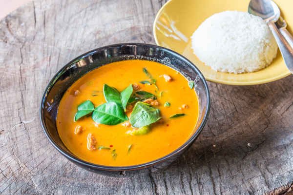 Panang curry paste in coconut milk, bell pepper, carrot, green bean…